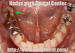 今回の患者さまは、下の写真の矢印部分の歯の歯周病が進行し、抜歯しなければいけない状態になってしまいました。