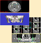 インプラントを入れる部位の顎の骨の検査をします(CT撮影)。 このCTスキャンのデータをコンピュータ上で立体画像として解析し、骨の詳しい厚みや、高さ、形状を診査し、最適な形状のインプラントを選択します。 |